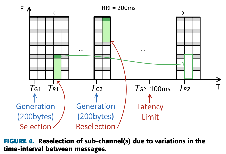 - If another vehicle generate a new message after $T\_{R2}$, the vechicle believes that vehicle A does not use the previous reserved sub-channel(s) ⇒ The risk of collision exists ‼️