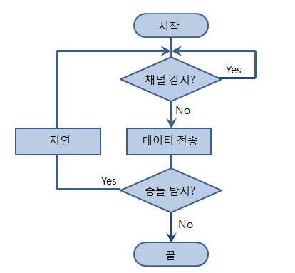 - 만약 수신 컴퓨터가 응답이 없거나 다른 신호와 충돌이 발생하면 일정 시간 동안 대기 후 다시 1번부터 실시한다. Collision Detection